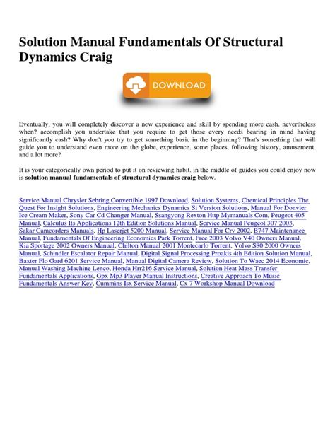 Download solution manual fundamentals of structural dynamics craig Kindle Editon